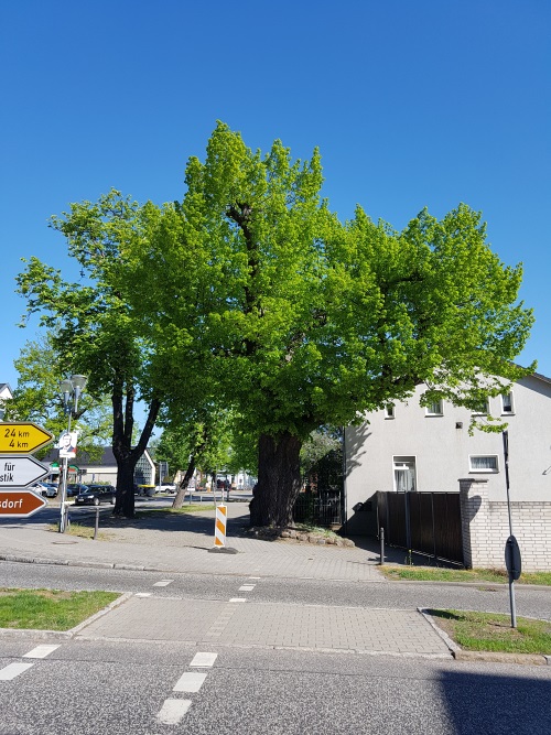 Es sind nicht nur Eichen, die in der Ortsgeschichte von Bedeutung sind. So zum Beispiel die imposante Linde nahe dem Gedenkturm. Selbige befand sich noch in den 1950er Jahren auf dem Grundstück Dorfaue 7, die schon damals durch die Begrenzung hindurch zu wachsen begann .